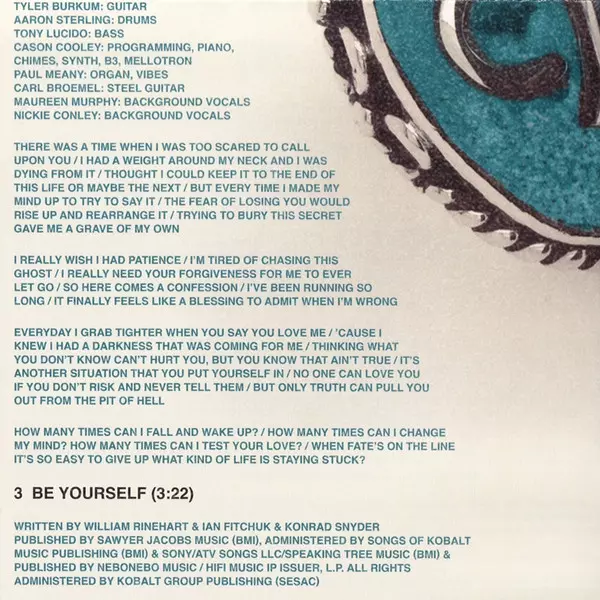 Backing Vocals Maureen Murphy (3), Nickie Conley | Bass Tony Lucido | Drums Aaron Sterling | Guitar Tyler Burkum | Lead Vocals, Guitar William Rinehart (2) | Piano Cason Cooley | Written-By Ian Fitchuk, Konrad Snyder, William Rinehart (2)