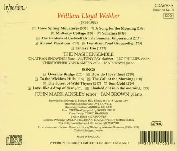 Piano Ian Brown (4) | Tenor Vocals John Mark Ainsley | Text By W. H. Davies