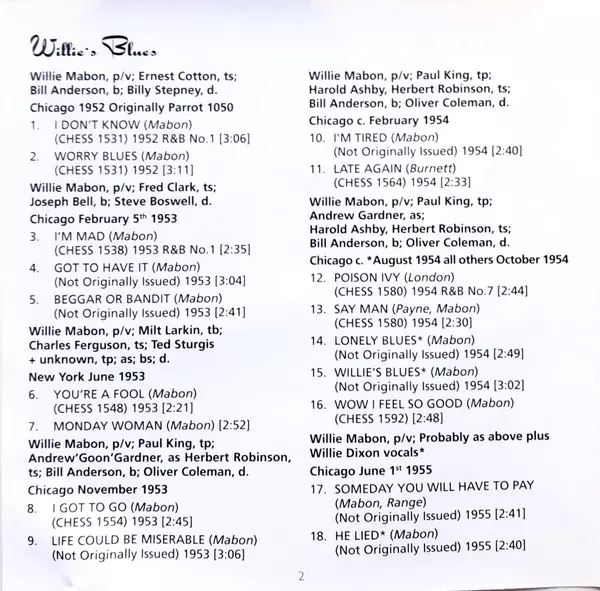 | Tytuł | Willie's Blues: The Greatest Hits (1952-1957) |