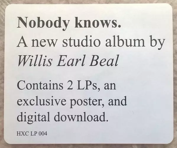 Willis Earl Beal: Nobody Knows Wersja na winylu 2LP w standardowe wydanie. Ta konkretna edycja została wydana w USA w wydawnictwie HXC Recordings dnia 5. września 2013. Album sięga do gatunku Pop, Blues i Funk / Soul.