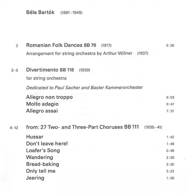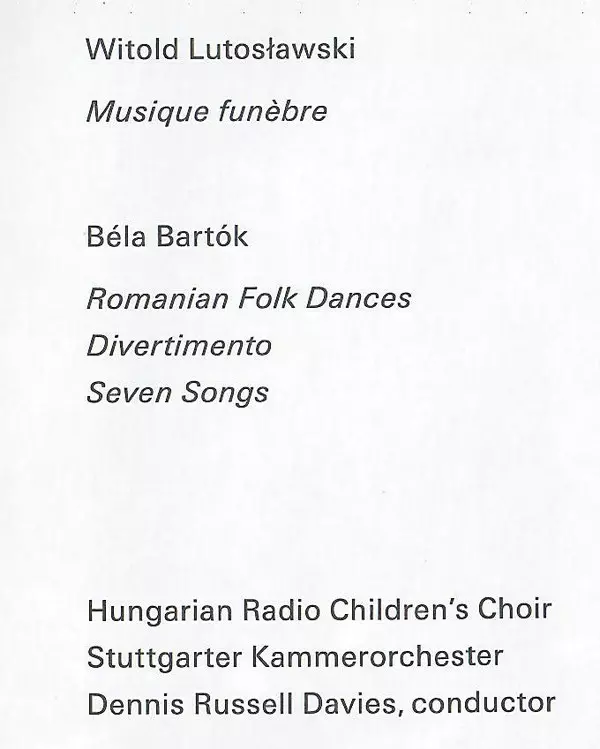 Wykonawca | Béla Bartók | Dennis Russell Davies | Stuttgarter Kammerorchester | Witold Lutoslawski |