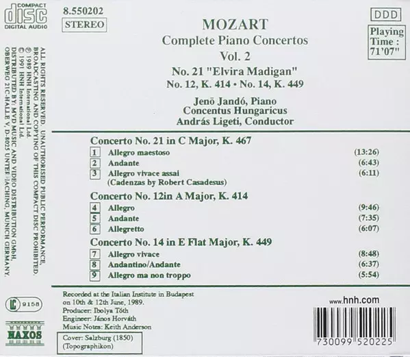 | Tytuł | Complete Piano Concertos Vol. 2 - No. 21 "Elvira Madigan", No. 12, K. 414, No. 14, K. 449 |