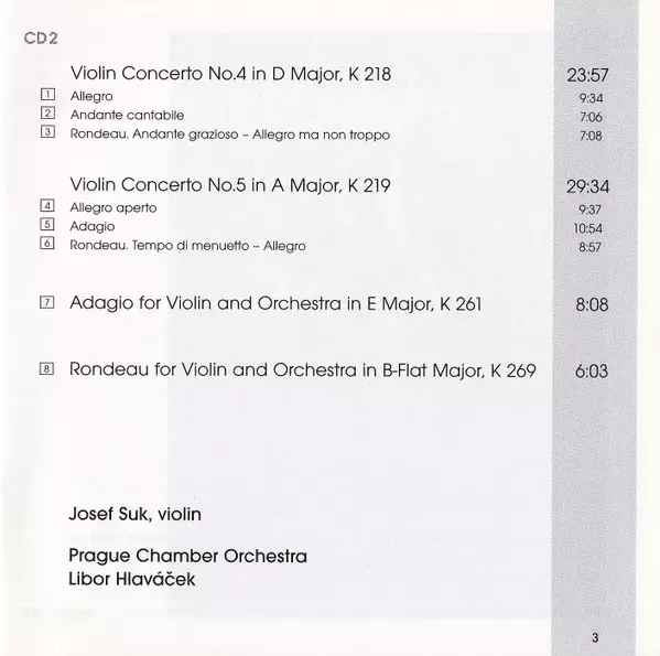 | Wykonawca | Wolfgang Amadeus Mozart | Prague Chamber Orchestra | Josef Suk | Libor Hlaváček |