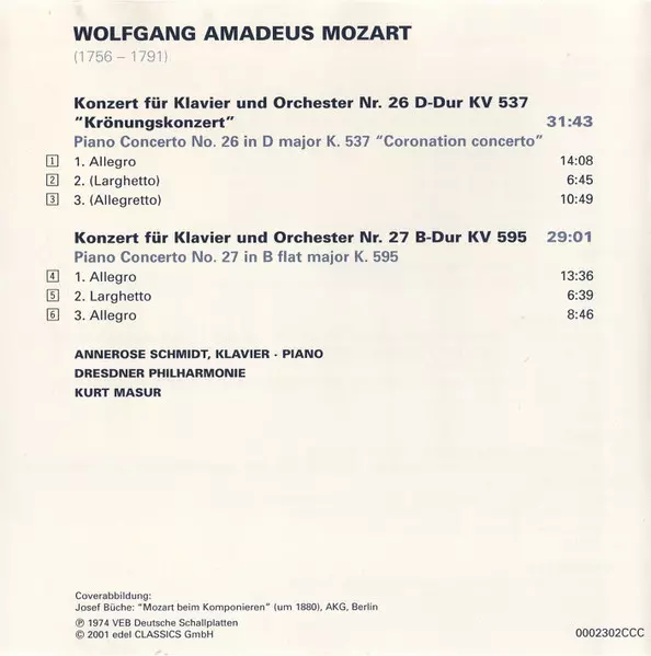 | Wykonawca | Wolfgang Amadeus Mozart | Kurt Masur | Dresdner Philharmonie | Annerose Schmidt |