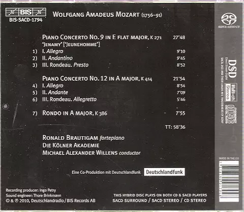 Wykonawca | Wolfgang Amadeus Mozart | Kölner Akademie | Michael Willens | Ronald Brautigam |