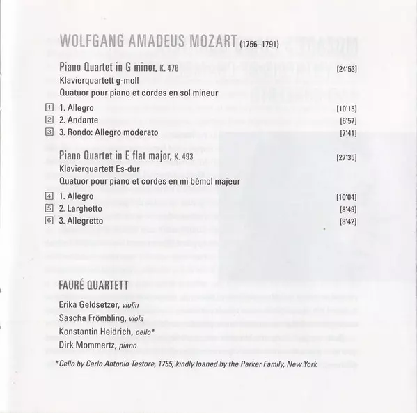 Piano Quartet In E Flat Major, K. 493 = Piano Quartet In G Minor, K. 478 = Klavierquartett Es-dur = Quatuor Pour Piano Et Cordes | 27:35 min |