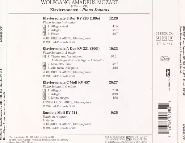 | Tytuł | Piano Sonatas KV 280 - KV 331 - KV 457 - Rondo KV 511 |