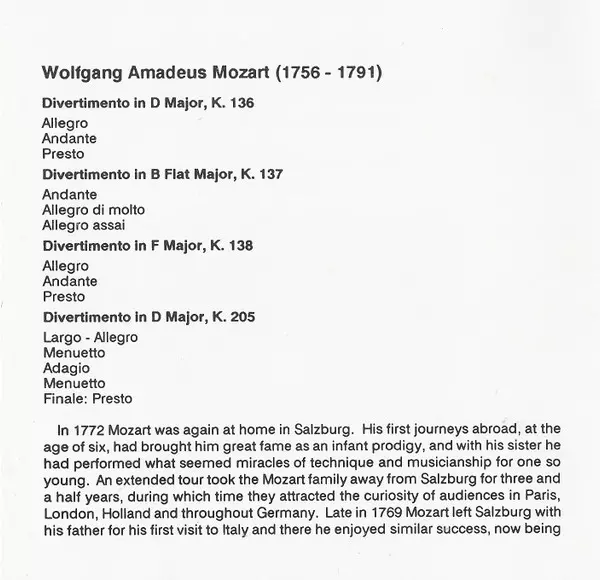 | Divertimento In B Flat Major, K. 137 | ||