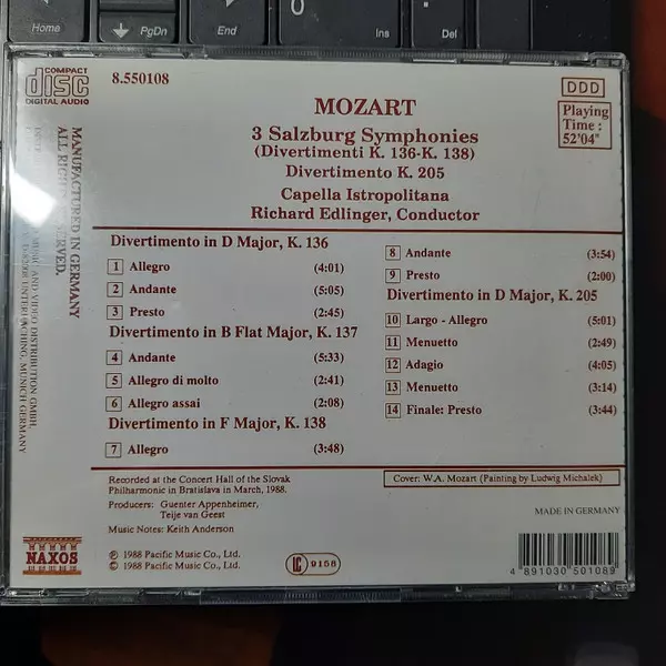 | Tytuł | Salzburg Symphonies / Divertimento K. 205 |