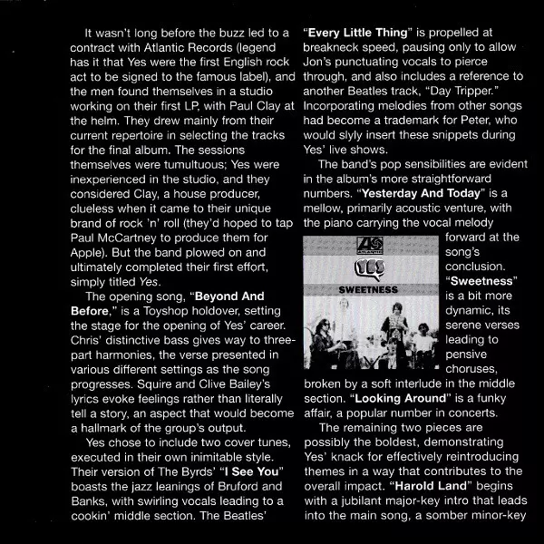 Yes is an album by the rock band Yes from 1969. It was their first album, released in the United Kingdom in February 1969. The album was produced by Tony Clarke. It was recorded at Advision Studios in London. The album was a commercial and critical success and reached number 10 in the UK Albums Chart. The album was awarded a gold certificate by ...