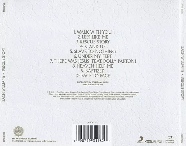 Zach Williams: Rescue Story Wersja na CD w standardowe wydanie. Ta konkretna edycja została wydana w USA w wydawnictwie Essential Records (3) dnia 1. listopada 2019. Album sięga do gatunku Rock, Folk, World, & Country, Country, Gospel i Country-Rock.