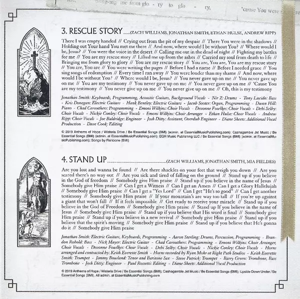 Acoustic Guitar, Backing Vocals Jonathan Smith (4) | Arranged By [Choir] Emoni Wilkins | Arranged By [Horns], Contractor [Horns] Keith Everette Smith | Bass Tony Lucido | Drums Fred Eltringham | Electric Guitar Chad Carouthers, Danny Rader, Kris Donegan | Engineer Joe Baldridge | Engineer [Assistant], Engineer [Overdub] Josh Ditty | Engineer [Southern Ground Assistant Engineer] Dan Davis (20) | Piano, Organ Ian Fitchuk | Programmed By Chad Carouthers, Jonathan Smith (4) | Recorded By [Choir] Josh Ditty | Recorded By [Horns] Ryan Mohr (2) | Tenor Saxophone, Baritone Saxophone Jimmy Bowland | Trombone, Bass Trombone Barry Green | Trumpet Keith Everette Smith, Steve Patrick (2) | Vocals [Choir] Debi Selby, Devonne Fowlkes, Emoni Wilkins, Nickie Conley | Written-By Jonathan Smith (4), Mia Fieldes, Zach Williams (3)