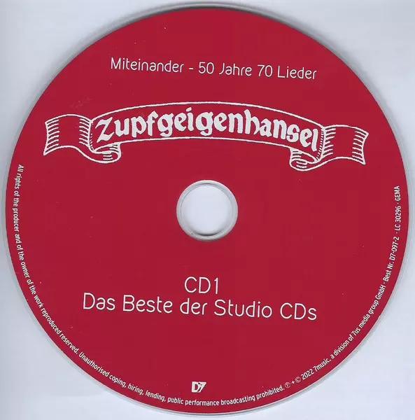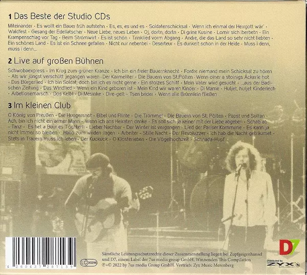 Zupfgeigenhansel: Miteinander - 50 Jahre 70 Lieder Wersja na 3CD w standardowe wydanie. Ta konkretna edycja została wydana w Niemcy w wydawnictwie D7 dnia 29. lipca 2022. Album sięga do gatunku Rock, Folk, World, & Country i Folk Rock.